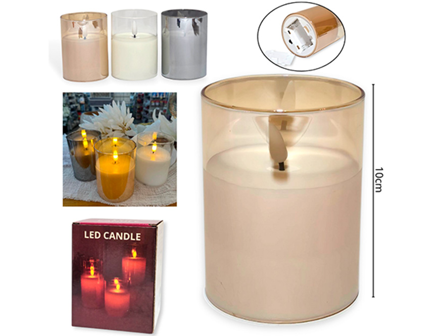 18-NAVIDAD STOCK 2 VELA A PILA VIDRIO 10CM 3 COLORES |