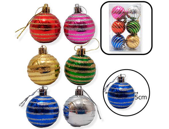 18-NAVIDAD 1 PREVENTA BOLAS 05CM X6 DECORADA 05CM RAYAS MIX |