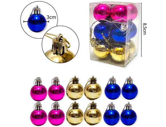 18-NAVIDAD 1 PREVENTA BOLAS 03CM 12 PCS VS COL |