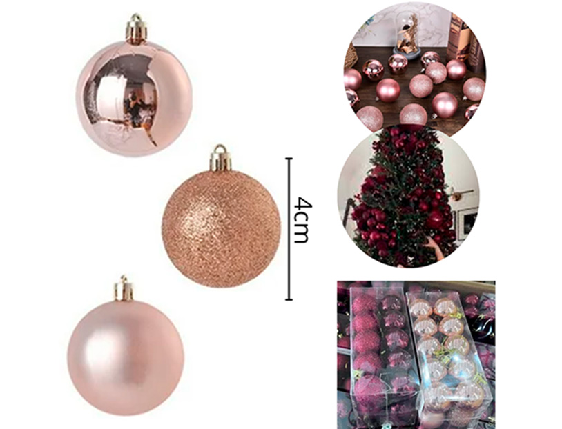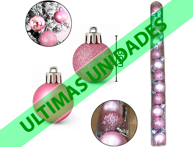 18-NAVIDAD 1 PREVENTA BOLA TUBO 03CM 12 PIEZAS ROSA BRILLANTE/MATE |
