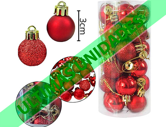 18-NAVIDAD 1 PREVENTA BOLA XM 03CM 24 PIEZAS ROJO BRILLANTE/MATE |
