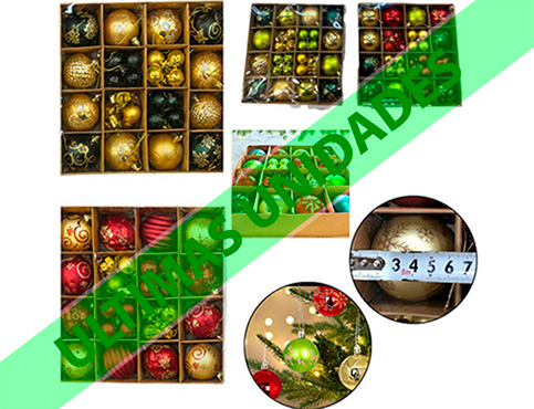 18-NAVIDAD 1 PREVENTA BOLA XM EN CAJA NAVIDEÑAS X44 PIEZAS MEZCLA COLORES Y MEDIDAS |