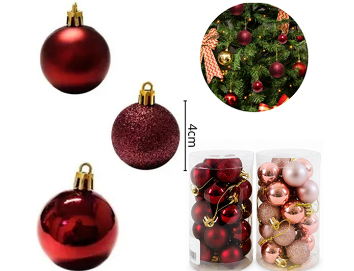 18-NAVIDAD 1 PREVENTA BOLA XM 04CM 24 PIEZAS ROJA BRILLANTE/MATE |