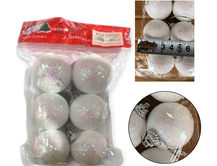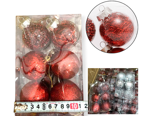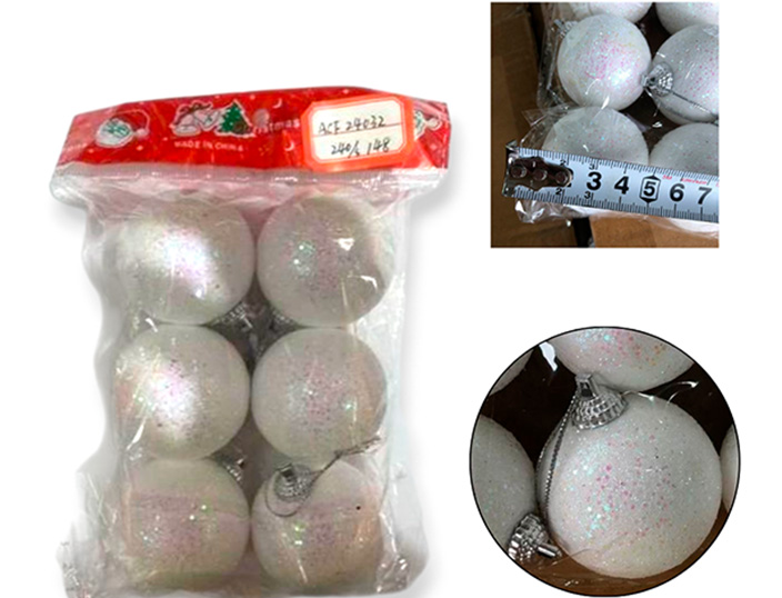 18-NAVIDAD 1 PREVENTA BOLAS NAVIDEÑAS MIX 3 COLORES 6CM X6 PIEZAS CON GLITTER |