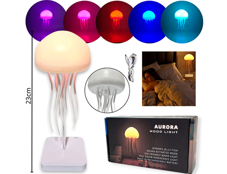01-NUEVOS INGR. CONT 1 VELADOR LAMPARA MEDUSA LED 5 COLORES RECARGABLE USB PLASTICO |