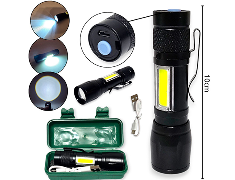 01-NUEVOS INGR. CONT 1 LINTERNA LED RECARGABLE 2 EN 1 USB CON ESTUCHE 9CM |