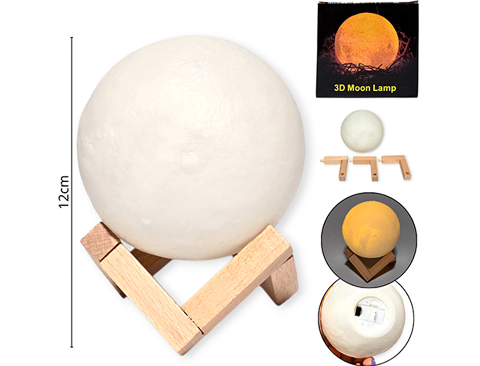 01-NUEVOS INGR. CONT 1 VELADOR LAMPARA DE ESCRITORIO LED LUNA LLENA 3D 12CM USB CON INTERRUPTOR |