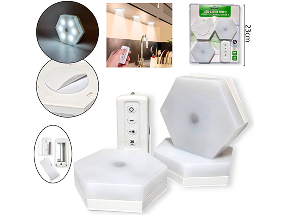 01-NUEVOS INGR. CONT 1 ELECT. LUCES 4 PCS PLASTICO CON CONTROL A PILA 9CM |