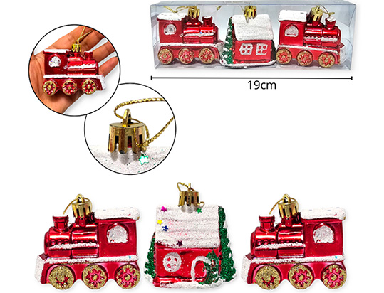 21-NAVIDAD 4 PREVENTA ADORNO NAVIDEÑO COLGANTE PLASTICO TREN X3 PIEZAS |