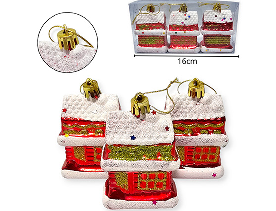 21-NAVIDAD 4 PREVENTA ADORNO NAVIDEÑO COLGANTE PLASTICO CASITA X3 PIEZAS |
