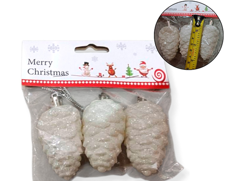 21-NAVIDAD 4 PREVENTA ADORNO NAVIDEÑO BLANCO COLGANTE PLASTICO PI?A X3 PIEZAS |