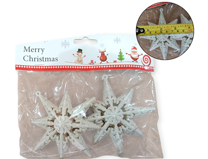 21-NAVIDAD 4 PREVENTA ADORNO NAVIDEÑO BLANCO COLGANTE PLASTICO ESTRELLA X2 PIEZAS |
