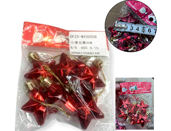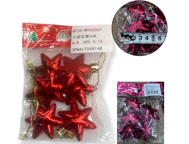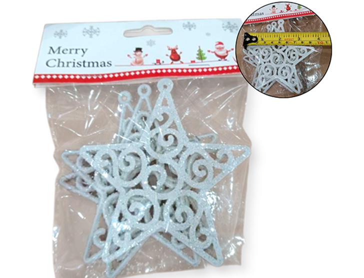 21-NAVIDAD 4 PREVENTA ADORNO NAVIDEÑO COLGANTE PLASTICO FORMA DE ESTRELLA X6 PIEZAS 4CM |