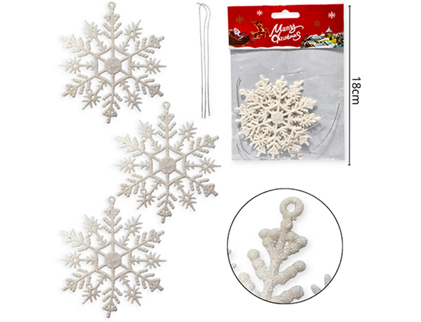 21-NAVIDAD 4 PREVENTA ADORNO NAVIDEÑO BLANCO COLGANTE PLASTICO COPO NIEVE 3 PZAS BLANCO |