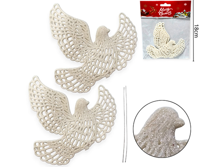 21-NAVIDAD 4 PREVENTA ADORNO NAVIDEÑO BLANCO COLGANTE PLASTICO PALOMA BLANCA 2 PZAS |