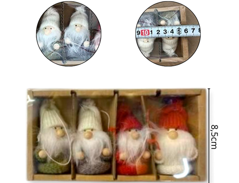 21-NAVIDAD 4 PREVENTA ADORNO PAÑO NAVIDEÑO COLGANTE GNOMO X4 PIEZAS |