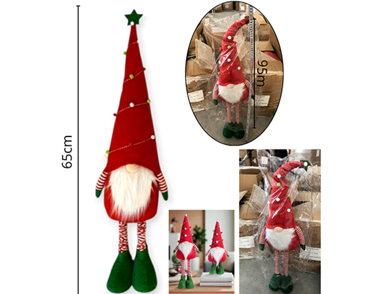 21-NAVIDAD 4 PREVENTA ADORNO PAÑO GNOMO DE PIE RETRACTIL 65 - 95CM ROJO CON VERDE |