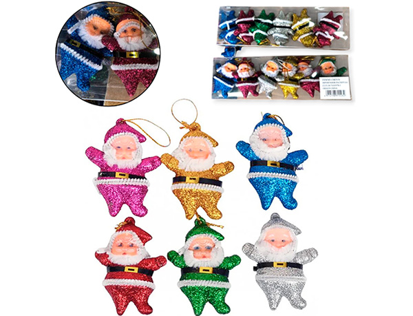 21-NAVIDAD 4 PREVENTA ADORNO NAVIDEÑO PLASTICO X6 PIEZAS PAPA NOEL COLGANTE |