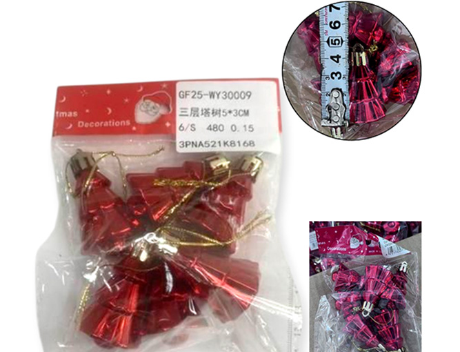 21-NAVIDAD 4 PREVENTA ADORNO NAVIDEÑO COLGANTE PLASTICO FORMA DE PINO X6 PIEZAS 5CM |