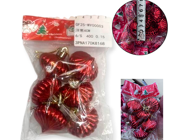 21-NAVIDAD 4 PREVENTA ADORNO NAVIDEÑO COLGANTE PLASTICO FORMA DE CEBOLLA X6 PIEZAS 4CM |