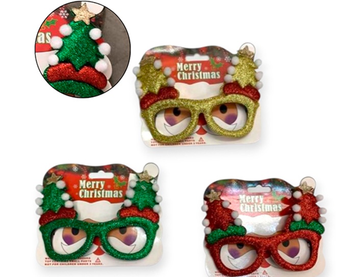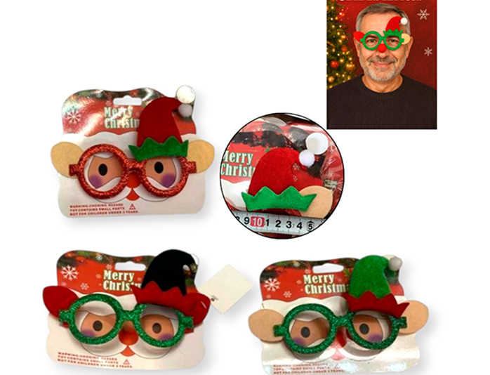 21-NAVIDAD 4 PREVENTA ANTEOJO NAVIDEÑO GORRITO 3 COLORES EN BLISTER 14CM |