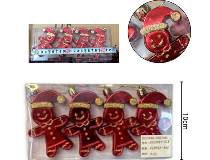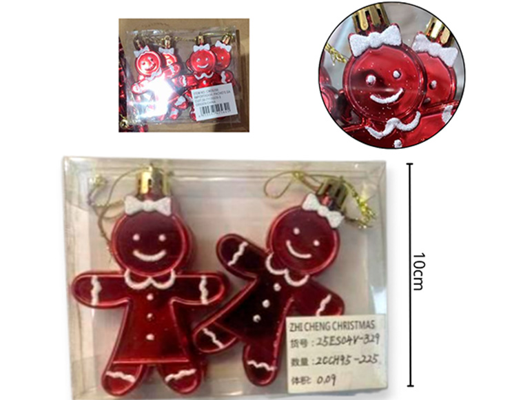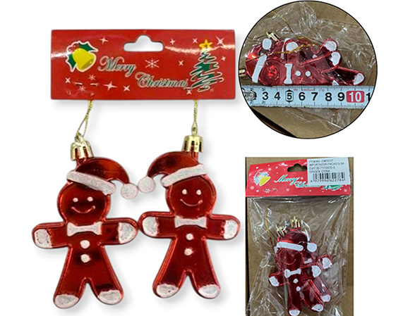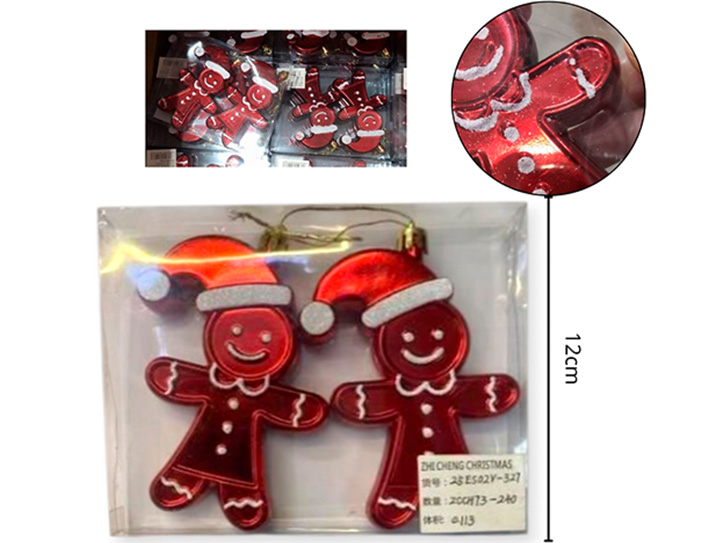 21-NAVIDAD 4 PREVENTA ADORNO NAVIDEÑO COLGANTE X2 PLASTICO 9CM X2 PIEZAS MUÑECO JENGIBRE |