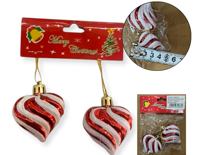 21-NAVIDAD 4 PREVENTA ADORNO NAVIDEÑO COLGANTE X2 PLASTICO 4CM X2 PIEZAS CORAZON |