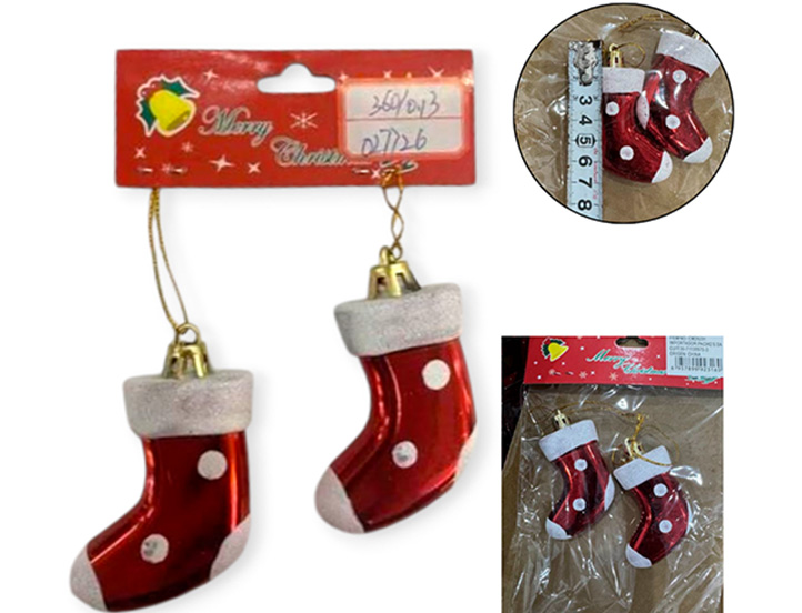 21-NAVIDAD 4 PREVENTA ADORNO NAVIDEÑO COLGANTE X2 PLASTICO 9CM X2 PIEZAS BOTITAS |