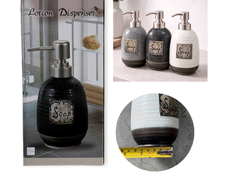 00-15-4 INGRESOS ABRIL DISPENSER CERAMICA 17CM 3 COLORES DISE?O SOAP |