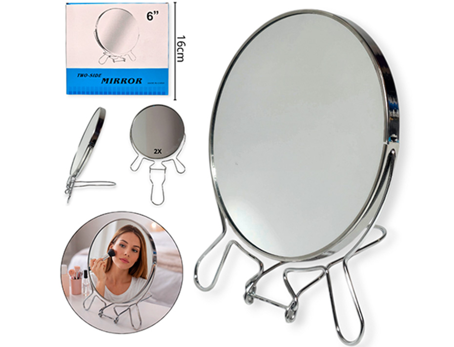 08-CEPILLOS Y ESPEJOS ESPEJO METAL CON AUMENTO 2X 6" |