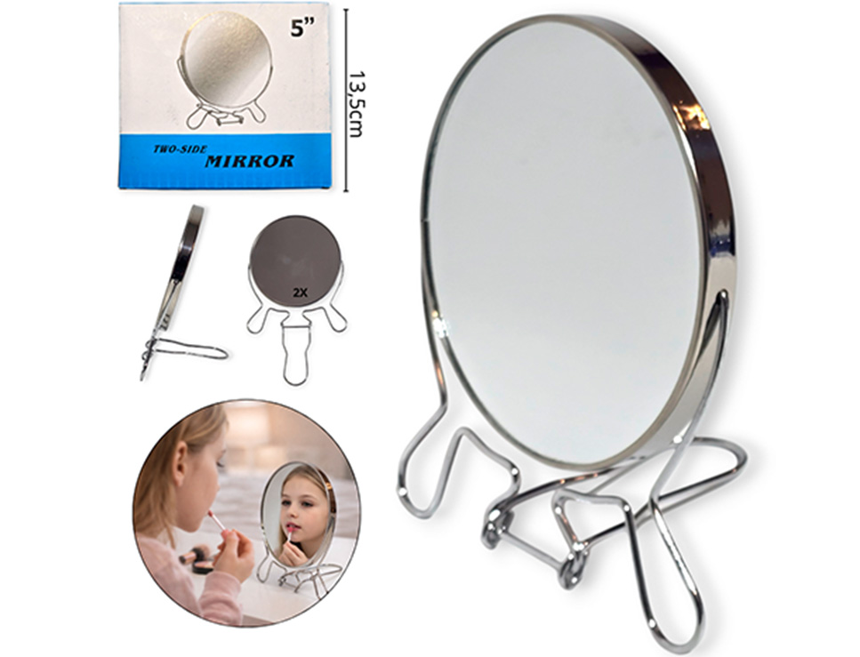 08-CEPILLOS Y ESPEJOS ESPEJO METAL CON AUMENTO 2X 5" |