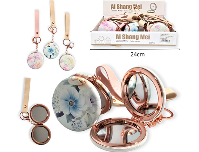 08-CEPILLOS Y ESPEJOS ESPEJITO CARTERA FLORES 6CM CON AUMENTO EN CAJA EXHIBIDORA |