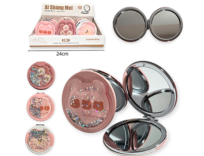 08-CEPILLOS Y ESPEJOS ESPEJITO CARTERA GLITTER METAL 7CM CON AUMENTO CAJA EXHIBIDORA |