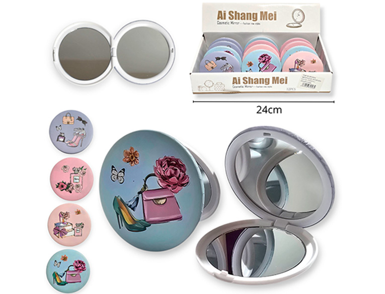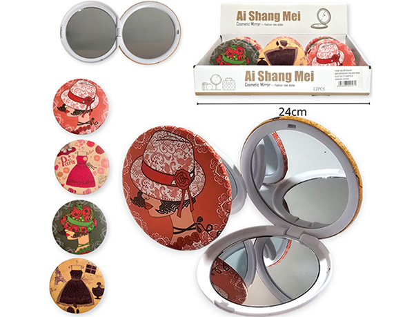 08-CEPILLOS Y ESPEJOS ESPEJITO CARTERA REL. 8CM CON AUMENTO EN CAJA EXHIBIDORA |