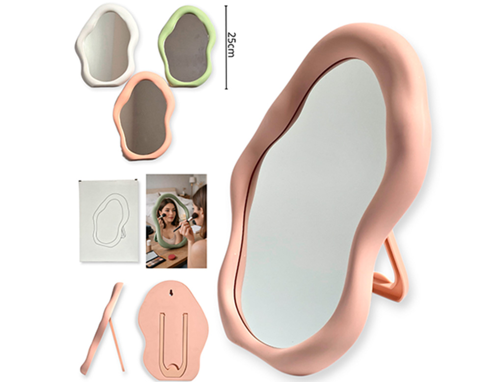 08-CEPILLOS Y ESPEJOS ESPEJO ONDULADO OVAL CON PIE PLASTICO 25X17CM 3 COLORES |