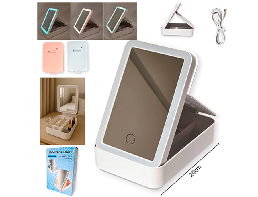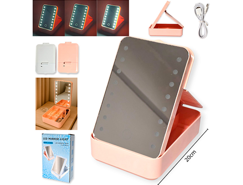 08-CEPILLOS Y ESPEJOS ESPEJO C LUZ PORTA BIJOU 2 COL 3 INTENSIDADES DE LUZ 20X14CM |