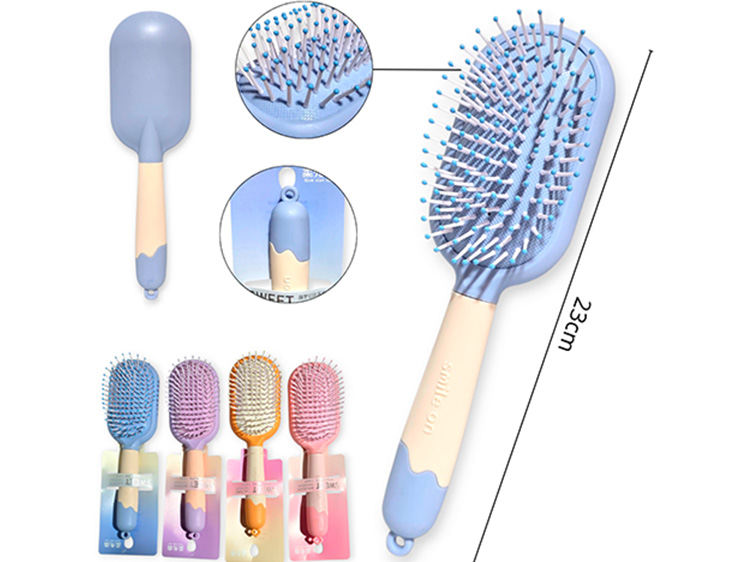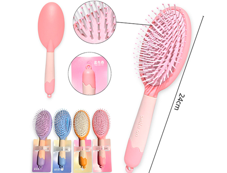 08-CEPILLOS Y ESPEJOS CEPILLO DE PELO CON MANGO PLASTICO OVAL COLORES PASTELES 22CM |