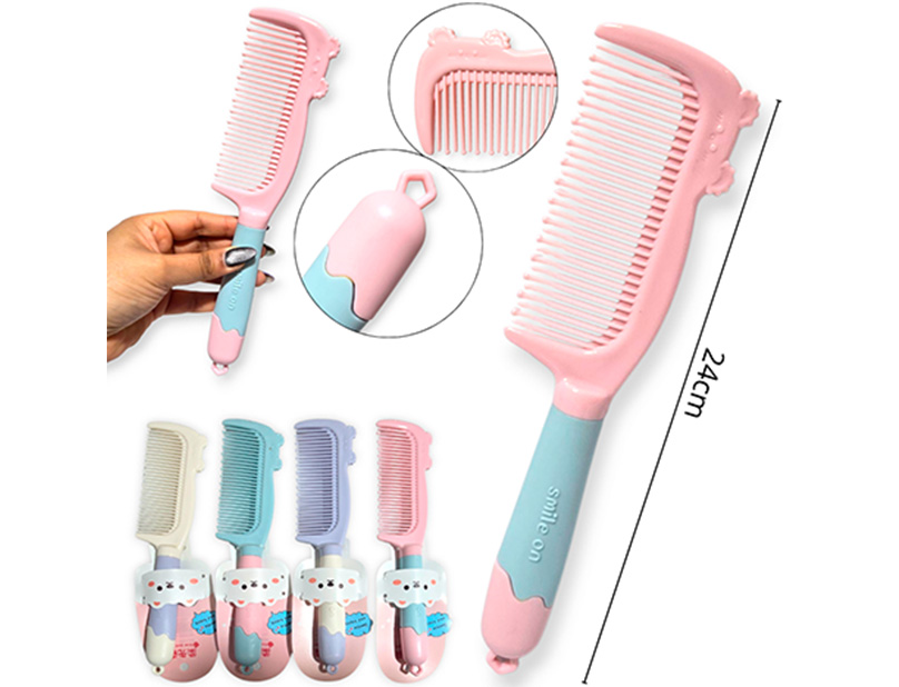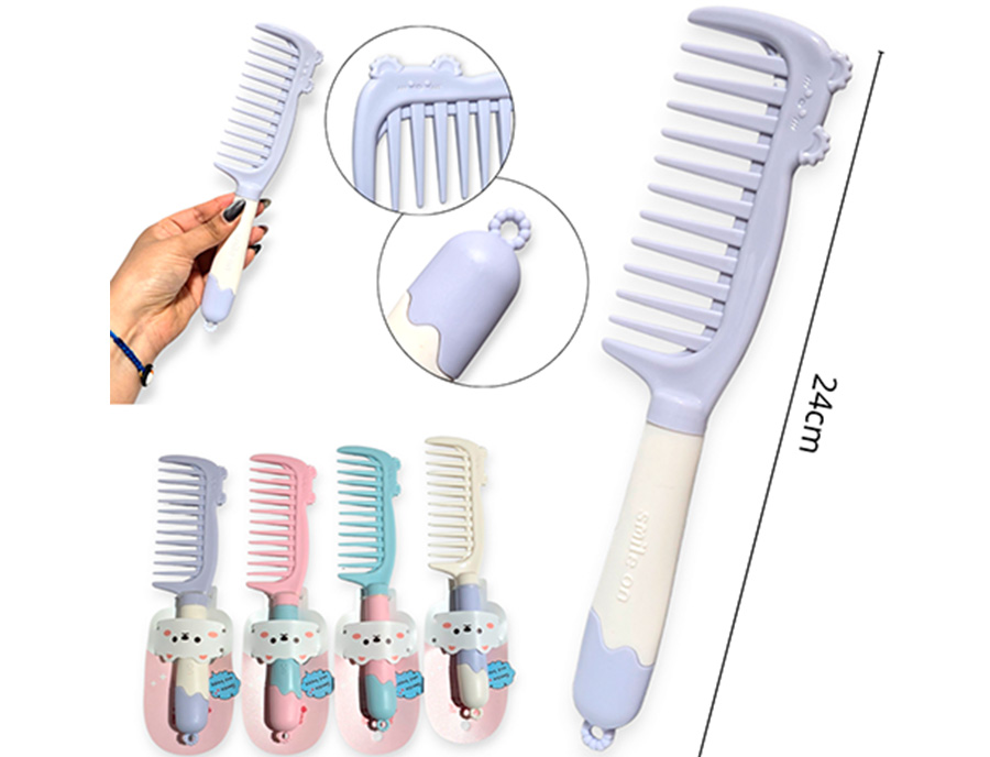 08-CEPILLOS Y ESPEJOS C PEINE MANGO PLASTICO DIENTES ANCHOS VARIOS COLORES 24CM |