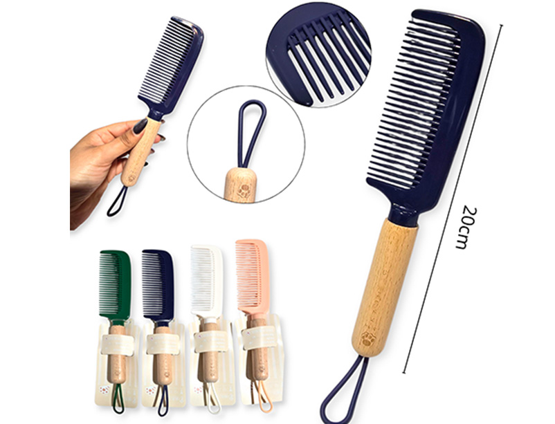08-CEPILLOS Y ESPEJOS C PEINE MANGO MADERA 4 COLORES 20CM |