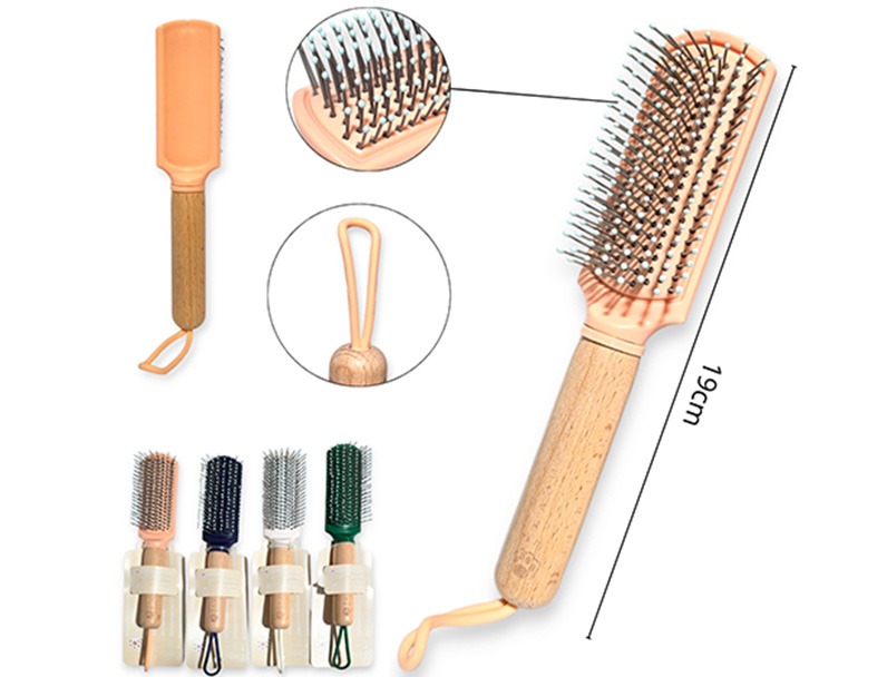08-CEPILLOS Y ESPEJOS CEPILLO DE PELO MANGO MADERA RECT 4 COLORES 20CM |