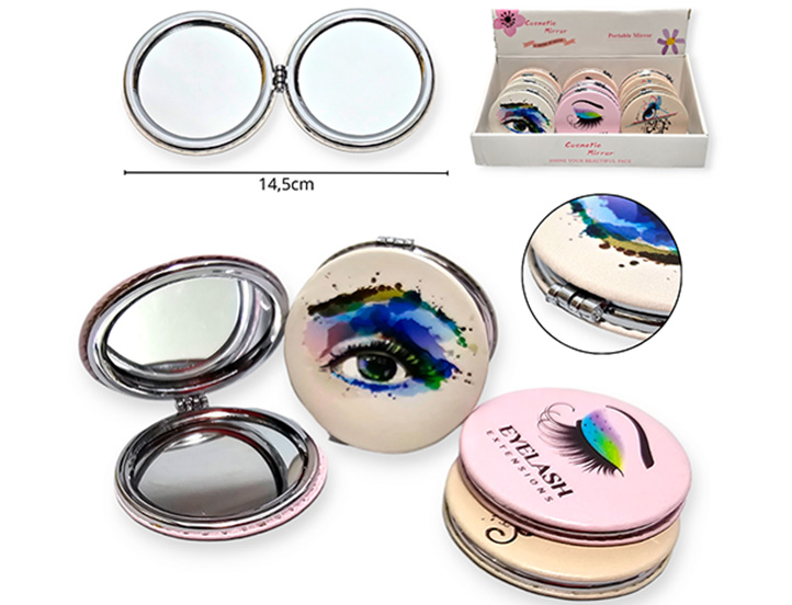 08-CEPILLOS Y ESPEJOS ESPEJO CARTERA REDONDO CON AUMENTO OJOS 2 |