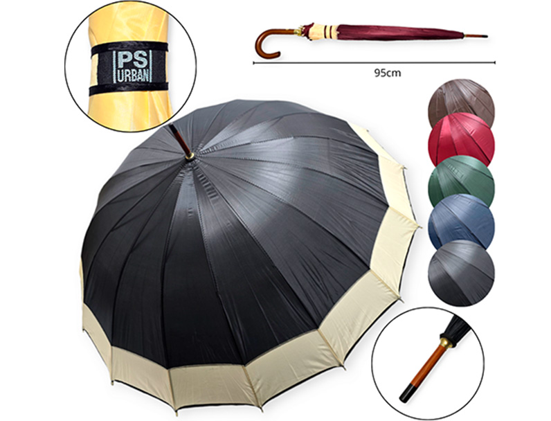 0-PARAGUAS-PILOTOS PARAGUA LARGO JUMBO 16 VARILLAS MANGO Y CENTRAL MADERA |