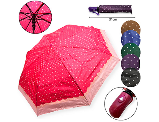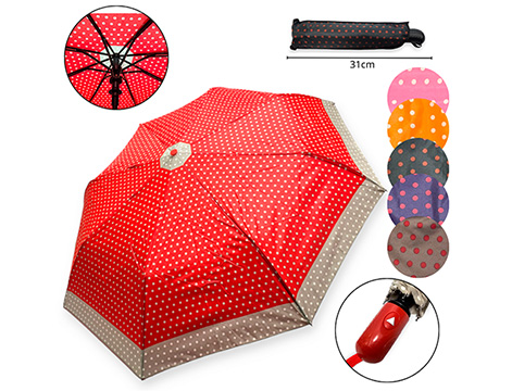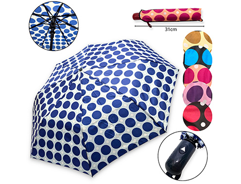 0-PARAGUAS-PILOTOS PARAGUA MINI SEMI AUTOMATICO 8 VARILLAS BICOLOR LUNARES |
