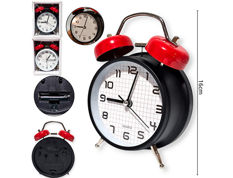 12-RELOJES / DESPERTADOR RELOJ DESPERTADOR METAL 2 COLORES FONDO CUADRILLE A PILA 10CM |