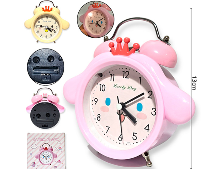 12-RELOJES / DESPERTADOR RELOJ DESPERTADOR PLASTICO 2 COLORES CON LUZ A PILA 10CM |