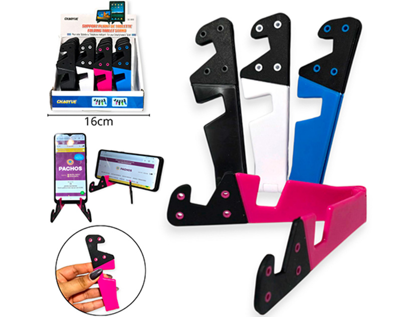 11-REGALERIA / PORTARRET SOPORTE TABLET O CELULAR 8CM PLASTICO EN CAJA EXHIBIDORA COLORES |