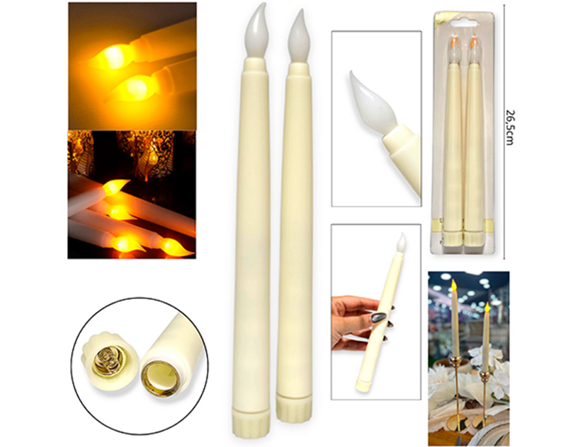 11-REGALERIA / PORTARRET VELA A PILA PLASTICO X2 LARGA 22CM NATURAL |