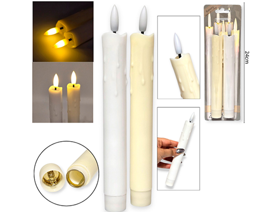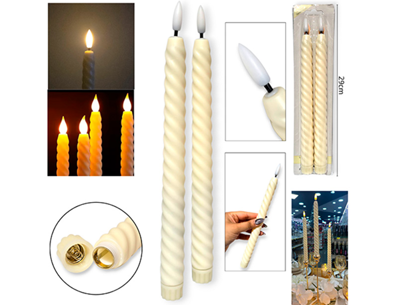 11-REGALERIA / PORTARRET VELA A PILA PLASTICO X2 LARGA 19CM BLANCA Y NATURAL |