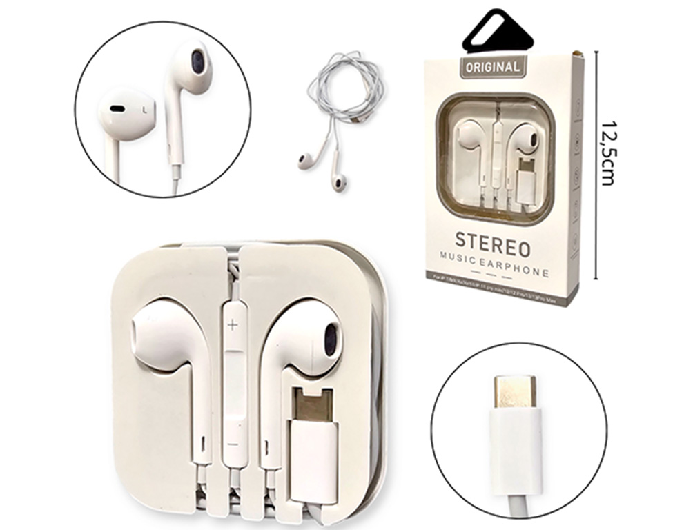 14-ELECTRONICA ELECT. AURICULAR CABLEADO IN EAR BLANCO TIPO C |