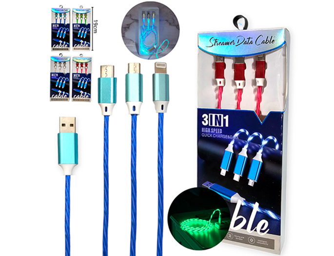 14-ELECTRONICA ELECT. CABLE DE DATOS 3 EN 1 CON LUZ VARIOS COLORES |